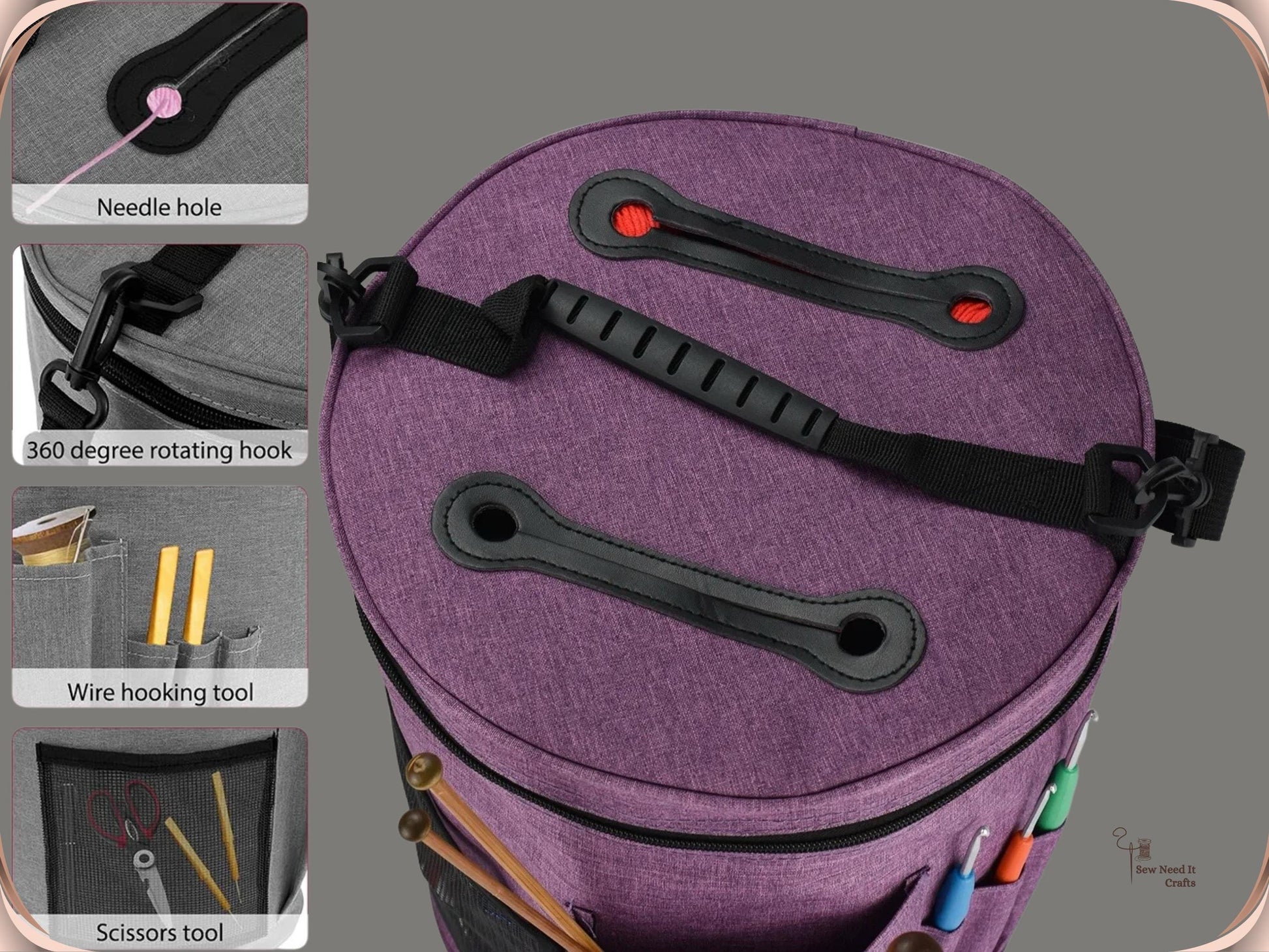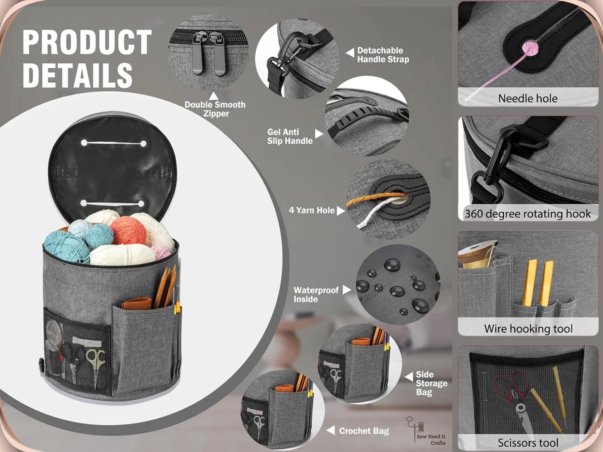 * Large Storage Capacity - Easily holds multiple skeins of yarn and tools