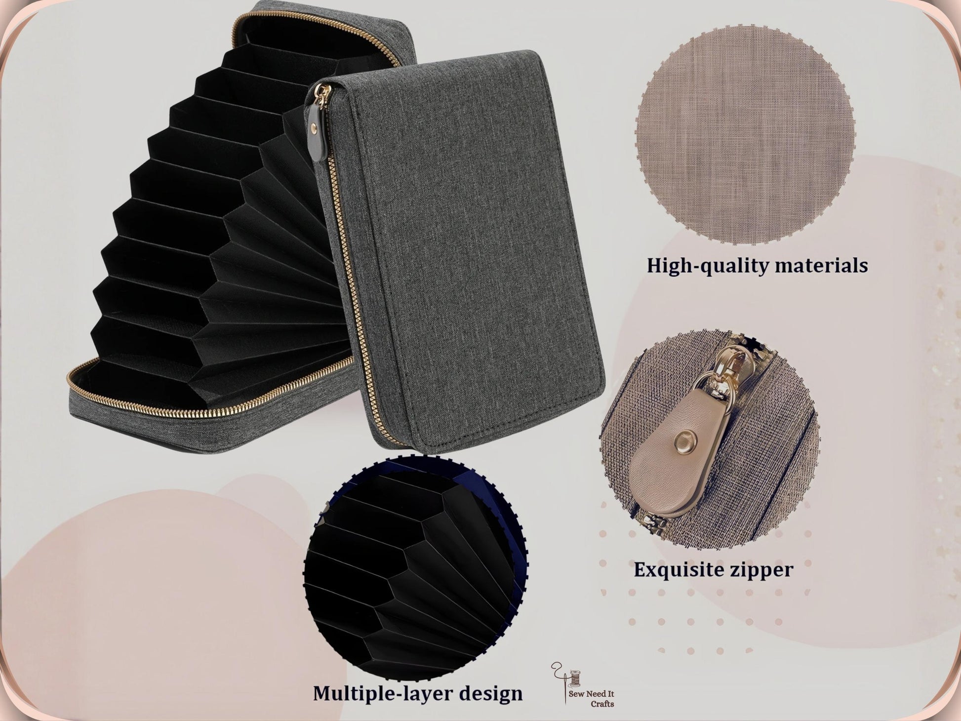 * Zippered closure to keep everything secure