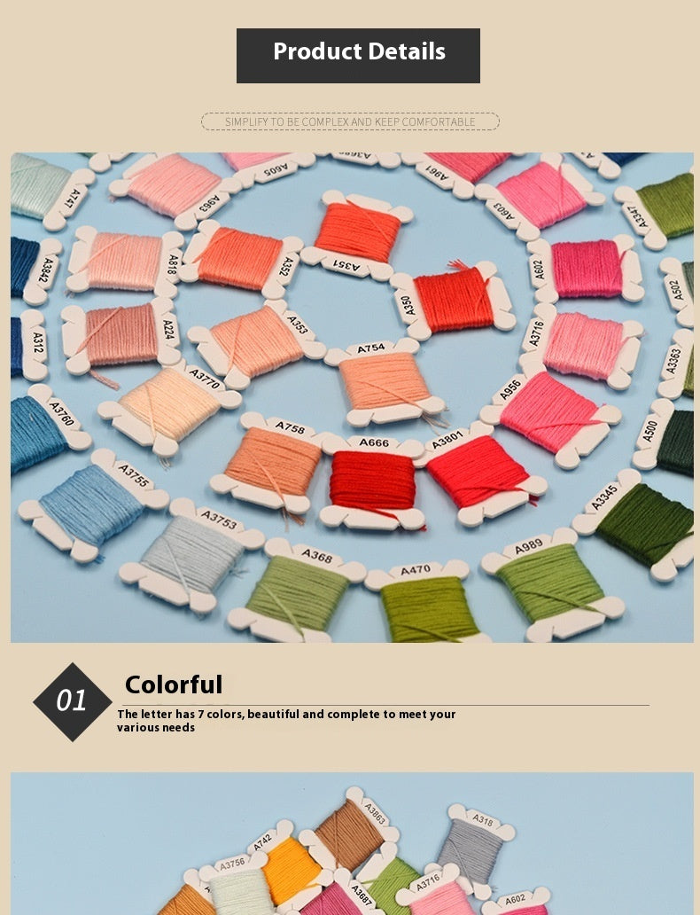 • Strands: standard 6-strand skeins, pre-wound on bobbins for instant use.