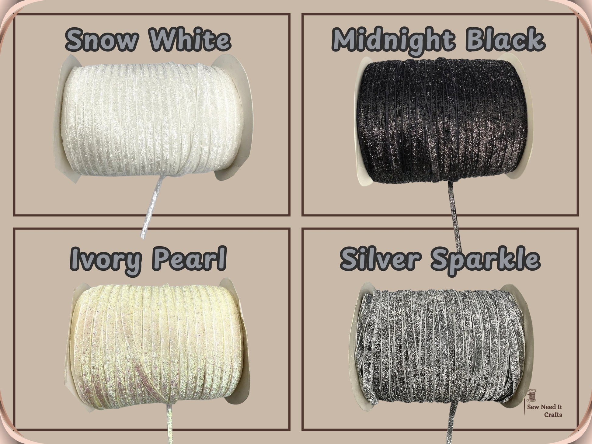 Glitter Velvet Ribbons 5 Yards / 4.5 Meters - 6 mm / 1/4" Single Sided Finished Edges