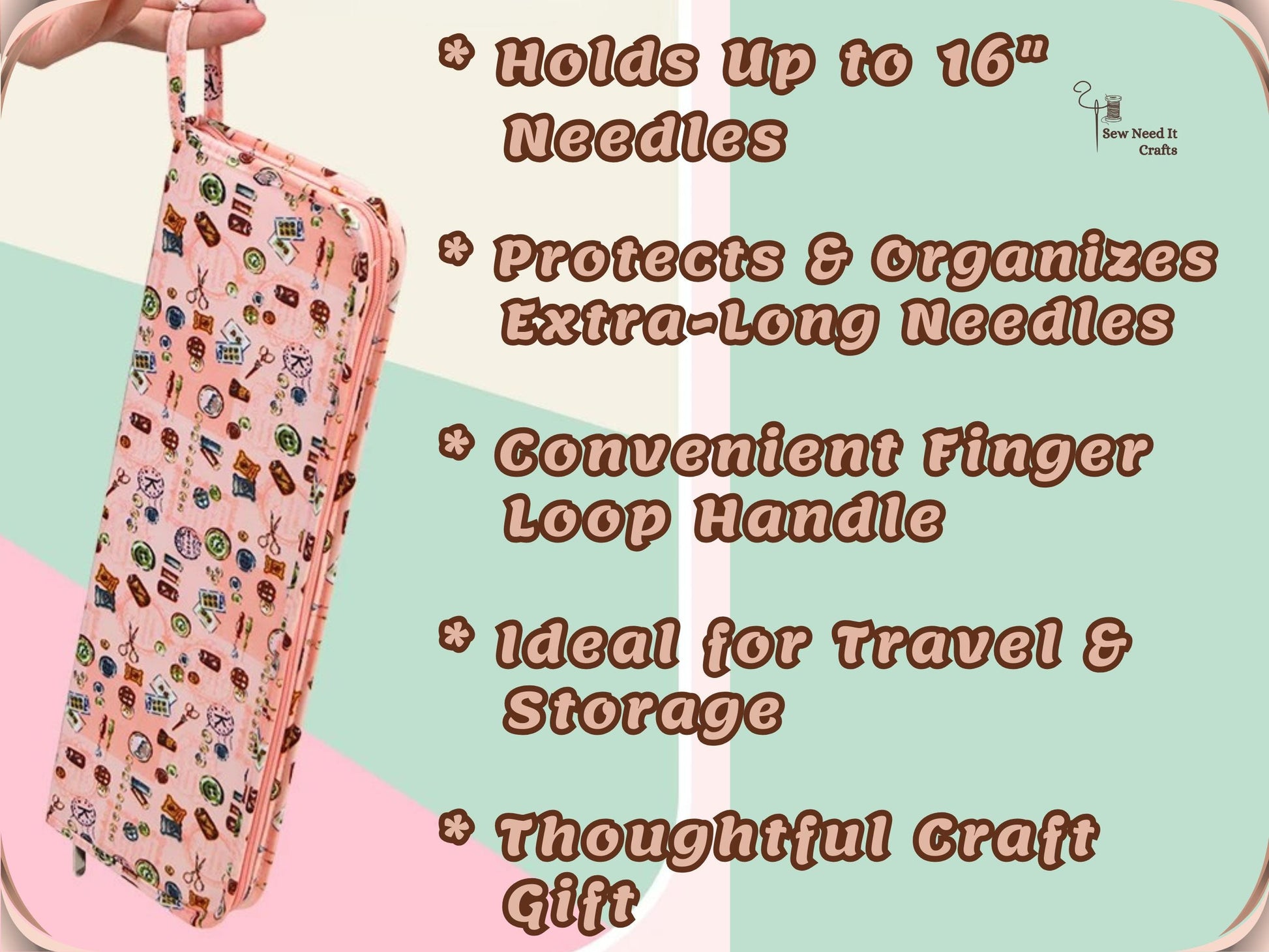 If you use long knitting needle sets or work with large knitting needles, this slim and spacious storage pouch is a must-have. Designed to hold extra long knitting needles up to 16 inches with convenient built-in loop handle for easy carrying, it's perfect for organizing and carrying long and large needles-especially bamboo knitting needles or other full-length styles. Whether you're looking for a portable knitting bag, a thoughtful gift for knitter, or a simple solution to tidy up your knitting supplies, this case delivers. Loved by crafters who knit with longer tools, it also makes great knitting gifts or gifts for knitters. It's a no-fuss, durable, and stylish knitting storage solution-ideal for anyone who appreciates a clean and functional knitting case, knitting needle case, or knitting pouch.